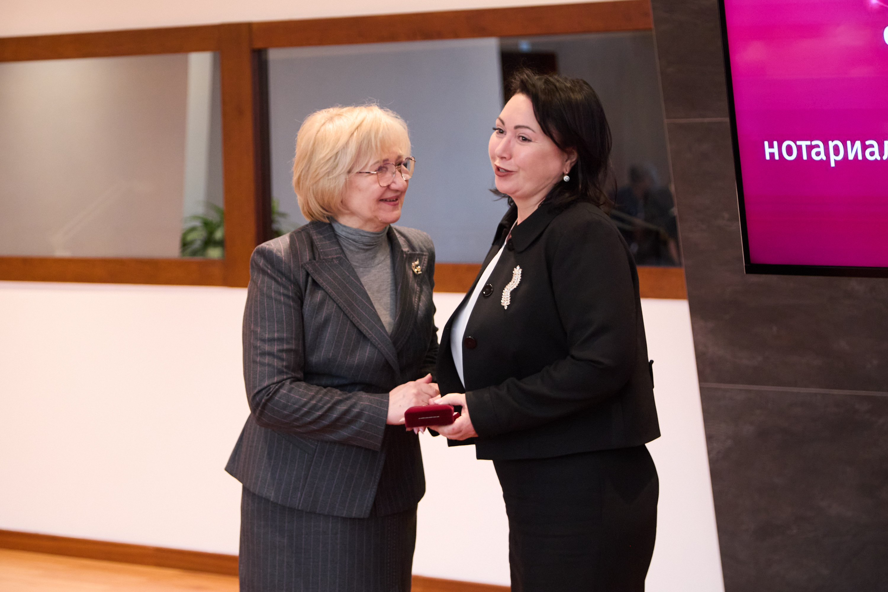 Медалью «За многолетний добросовестный труд в нотариате» 2 степени были награждены президент Нотариальной палаты Республики Северная Осетия-Алания Бэла Кисиева и президент Нижегородской областной нотариальной палаты Кирилл Лазорин.